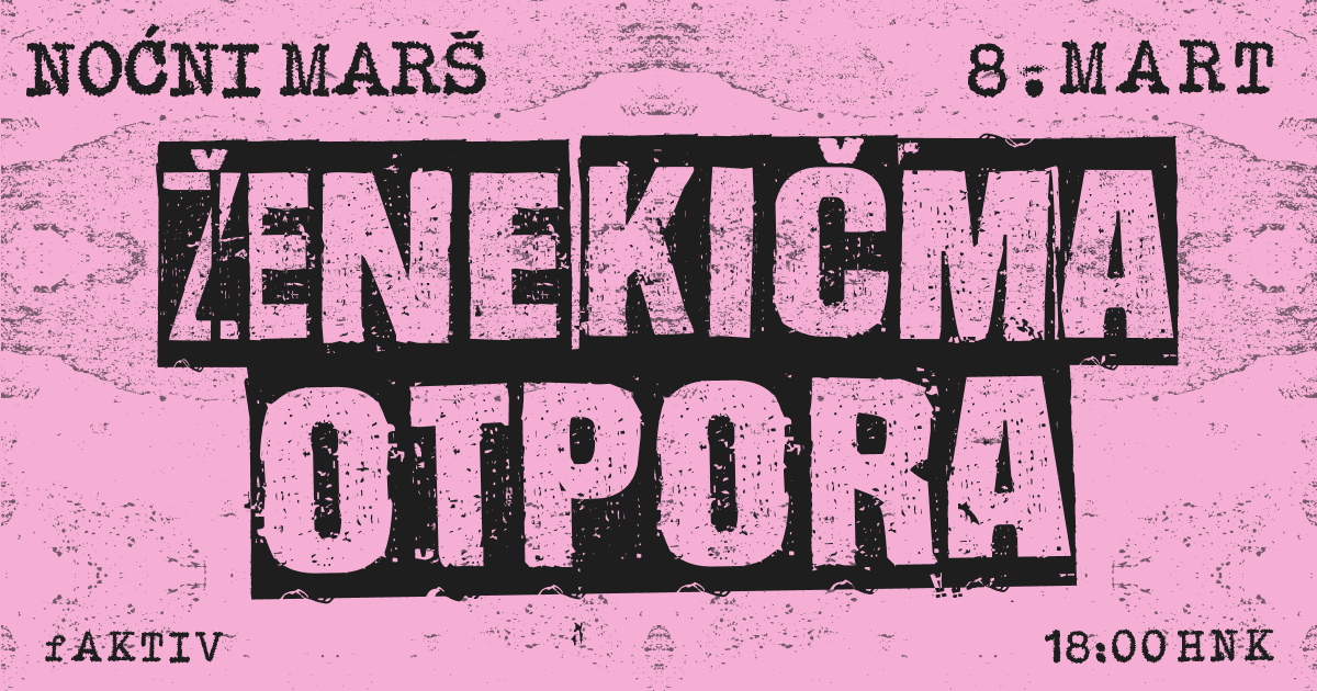Feministički kolektiv fAKTIV poziva vas da u nedjelju, 8. ožujka, izađete na deseti zagrebački Noćni marš – 8. mart, najveći prosvjed za ženska prava u Hrvatskoj. Pod parolom “Žene – kičma otpora” fAKTIV poziva na okupljanje ispred Hrvatskog narodnog kazališta (Trg Republike Hrvatske 15, Zagreb) u 18 sati, odakle će se marširati preko Frankopanske i […]